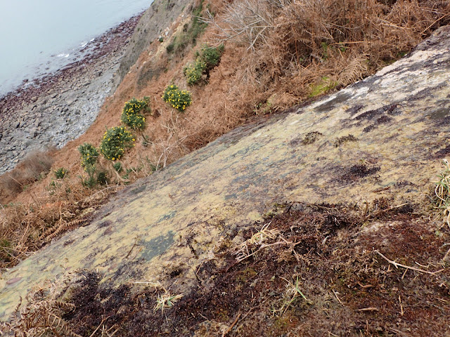 A jumble of shale boulders higher up the slope had a few small tufts of Grimmia montana, which I was particularly pleased to find, as I've never been able to locate the single tuft that Sam found on the south coast near Monkstone Point. His flora entry says that "remarkably, Campylopus pilifer grew on the same rock". Even more remarkably, Campylopus pilifer grew on my rock too, and both finds were on the same date, just 15 years apart.